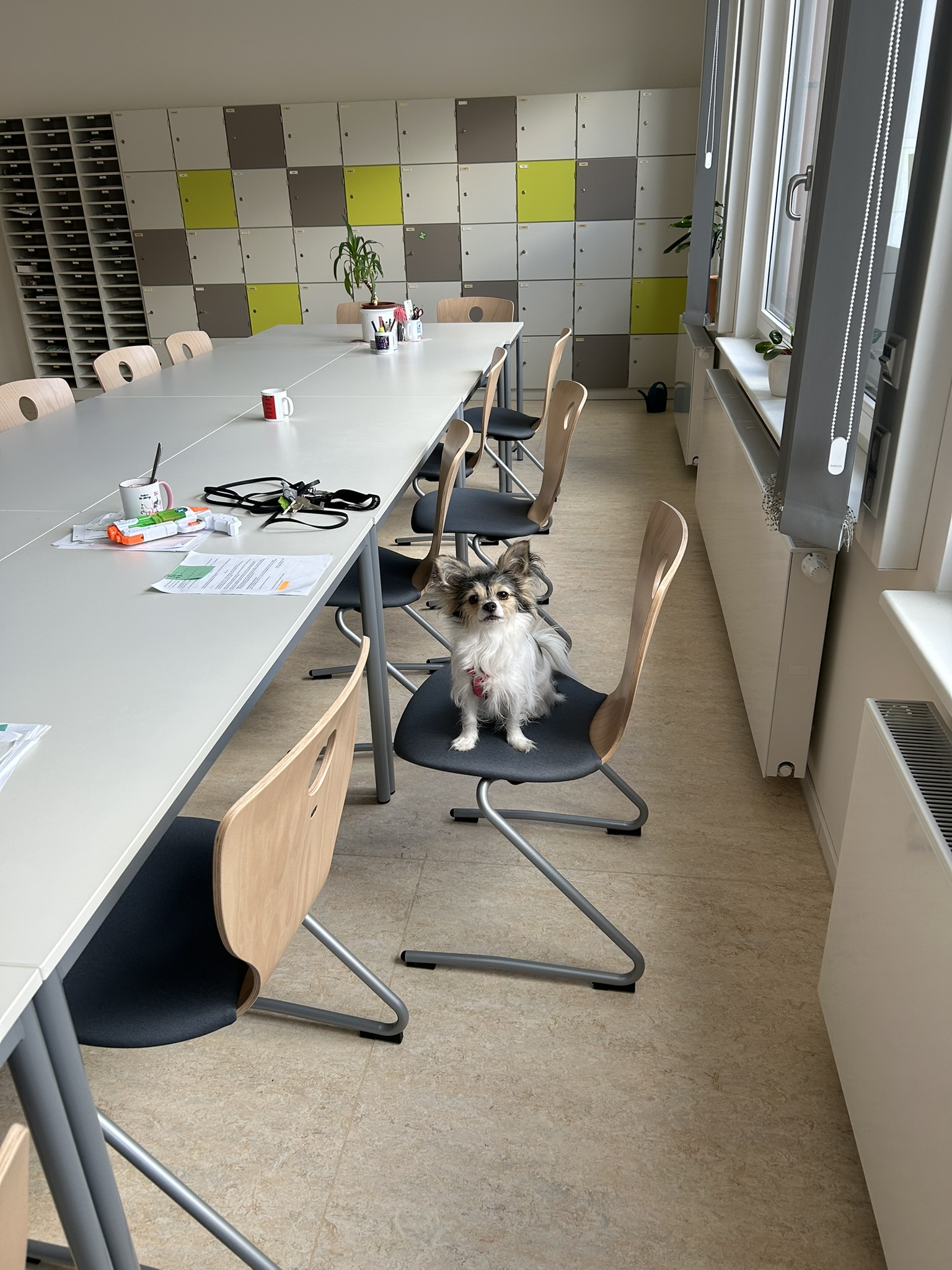 Bailey ist eine vierjährige Chihuahua-Dackel-Hündin – verspielt, neugierig und mit einem feinen Gespür für die Stimmung im Raum. Aktuell begleitet sie Francine Beutner dienstags und freitags im Unterricht und sorgt mit ihrer fröhlichen Art für viele schöne Momente.